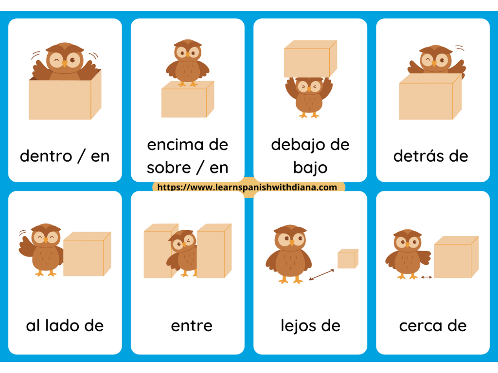 Learn how to talk about position and place in Spanish with this fun, visual set of flashcards! From under and in front of to between and inside, these cards will help you master essential prepositions of place in a simple and memorable way.